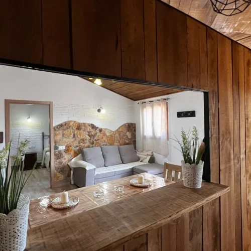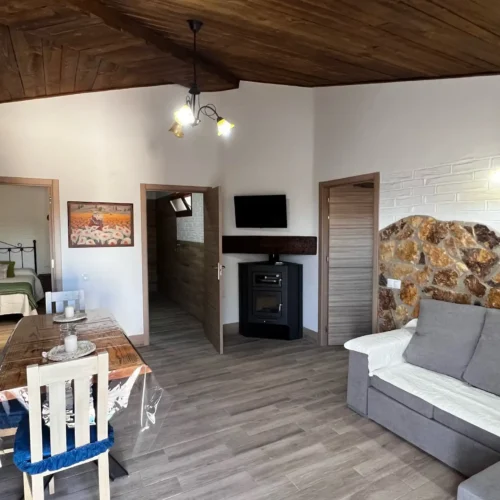 Casa El Valle es una vivienda rural muy acogedora, perfecta para quienes buscan descanso y un entorno natural tranquilo. Su interior combina madera, piedra natural y tonos cálidos, creando un espacio cómodo y con encanto.